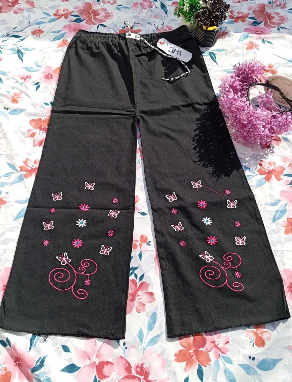 Add a touch of elegance to your everyday look with these beautiful butterfly embroidered pants. Crafted from soft, breathable fabric, these pants combine comfort with trend-forward style. The delicate butterfly embroidery adds a feminine charm, while the relaxed cargo fit and elastic waistband ensure all-day ease.